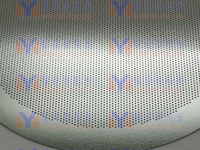 1.用蚀刻工艺制作不锈钢滤网。可加工的材料料厚度范围从0.03mm到1mm,孔径密度可调,设计模板及更改的成本相对于五金模具要低很多。可以做了很密集的孔。孔大小从0.1mm直径往上,都可以加工